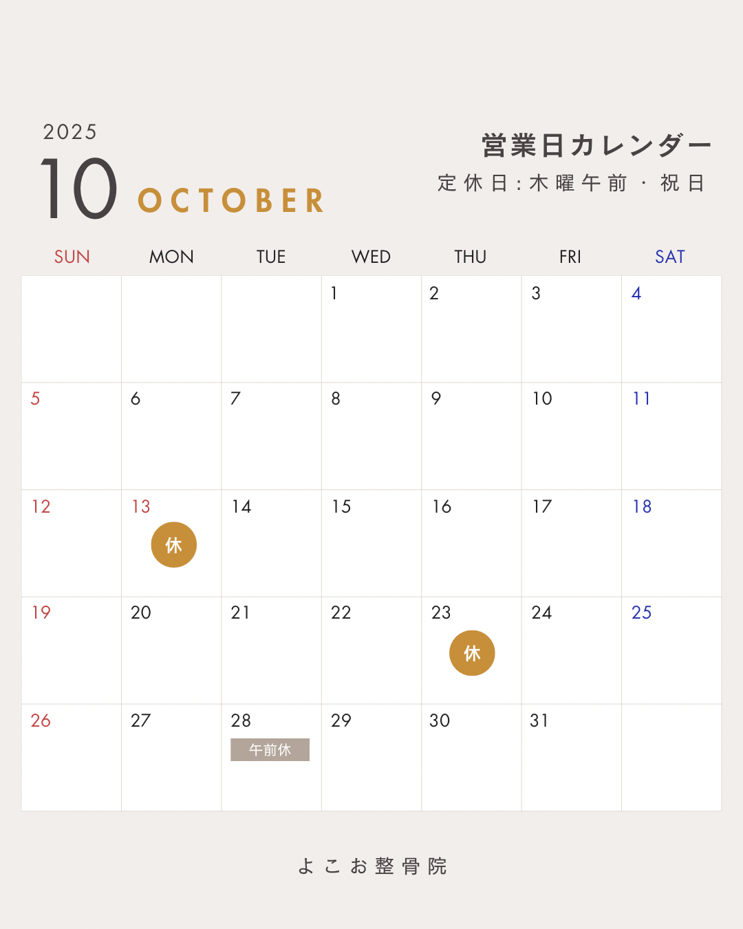 202510月の予定をお知らせいたします。