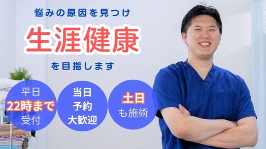 仕事柄予定が立てづらく当日予約になることが多いですが、快く対応していただけます。施術効果も高く、平日22時まで対応していただけるのは本当にありがたいです!
