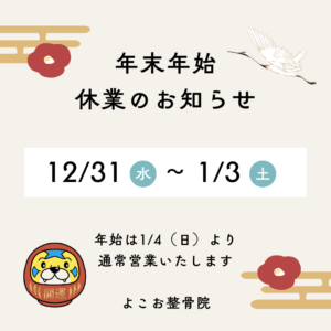 📅 休業期間:12月31日(水) 〜 1月3日(土)