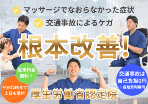 事故直後は痛みがなくても、数日後に首・肩・腰の不調が出ることも…。