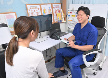 私は「早期改善」を特に意識してお客様と接しています。そのためにお客様の生活背景や習慣を知り、普段の行動から痛くなる行動をお客様と考え、より早く「お悩みが改善する」ことを実現しています。お客様と二人三脚で施術を行うことが早期改善には必要であり、大事な要素だからです。