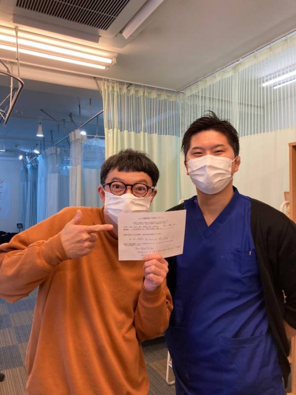交通事故に遭った後、すぐに来店しました。ケガへの施術はもちろん、保険や弁護士の案内もしてもらうことが出来、安心してお任せすることが出来ました。