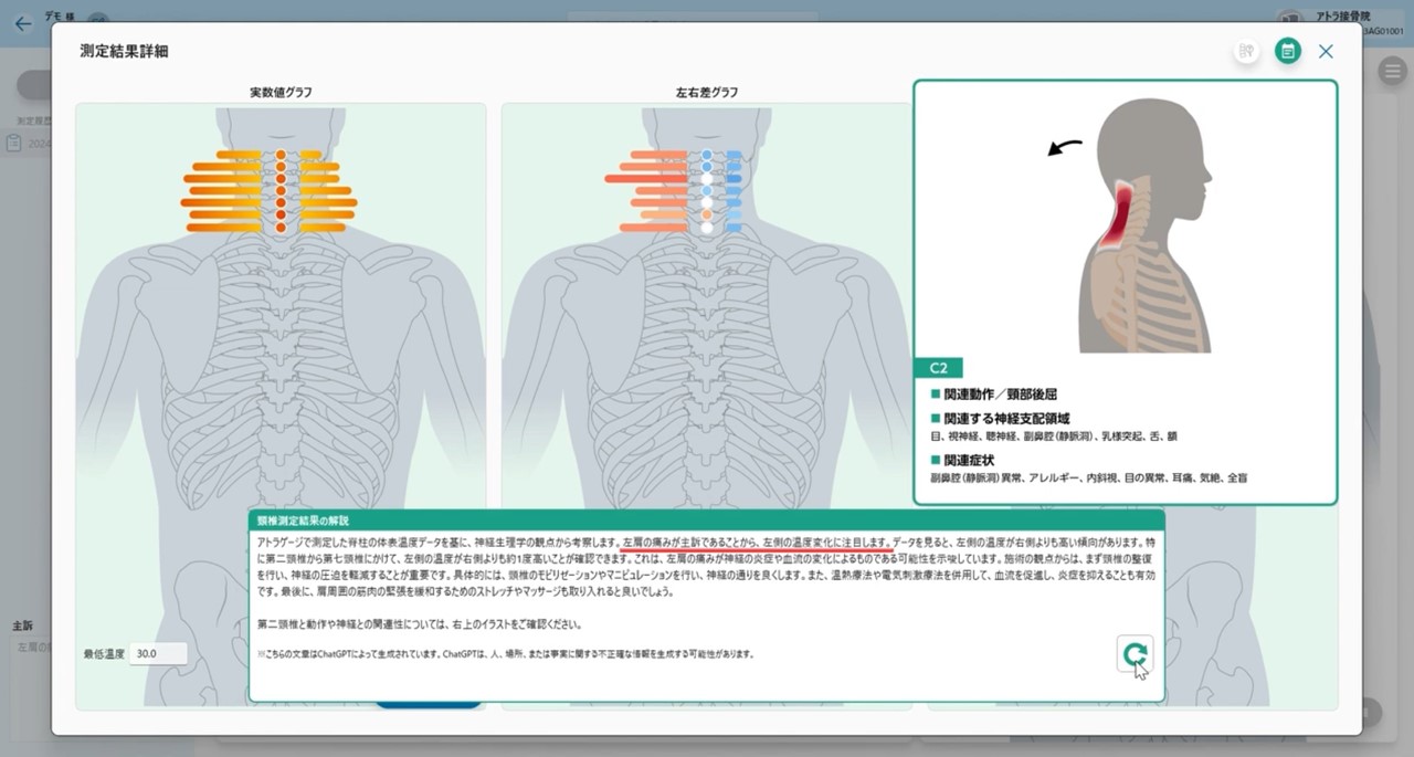 アトラゲージではこれまで見ることができなかった神経の不調を視覚的に確認できるようになります。皮膚の温度や電気抵抗の左右や上下の違いを調べることで、あなたが抱えている不調の根本的な原因を見つけ出します。