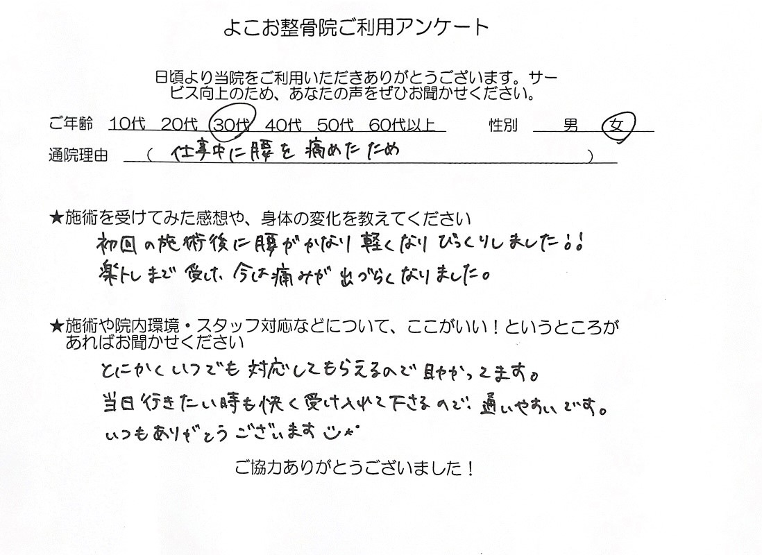 ・痛みがなくなったあと楽トレを行ったため、その後は痛めることがほとんどなくなり、お仕事への支障も減ったそうです!