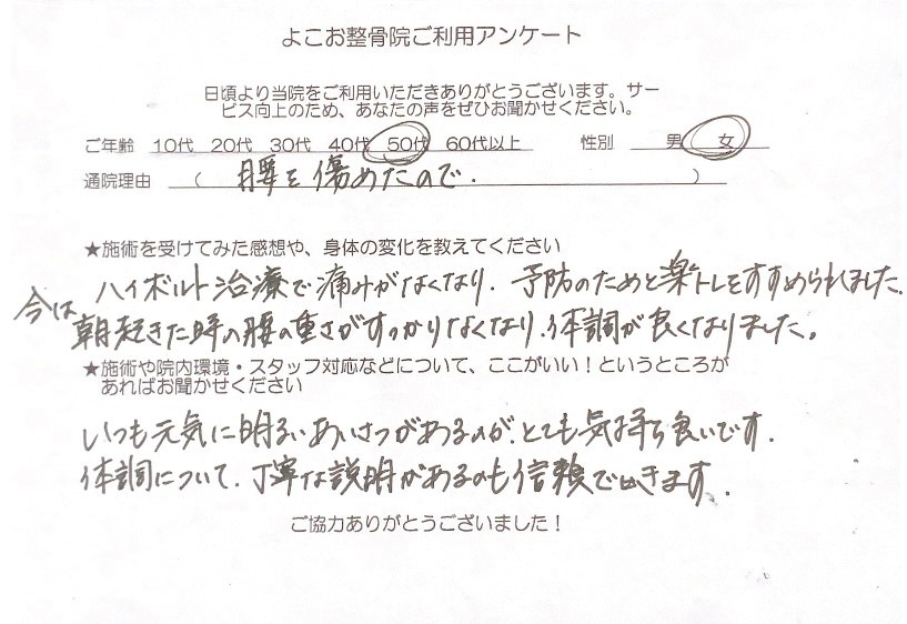 ぎっくり腰でお越しのお客さまの声|よこお整骨院